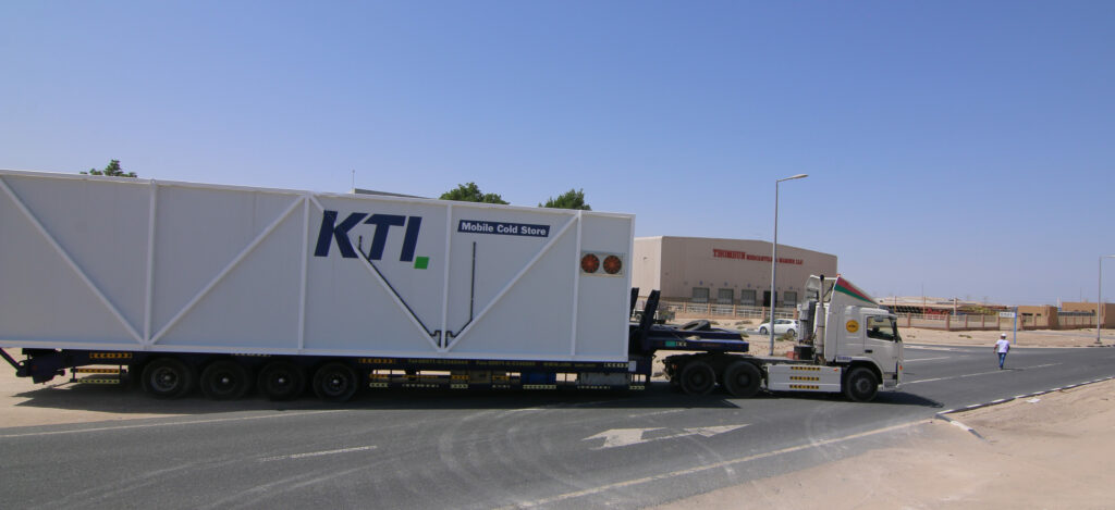 KTI offers the portable cold storages in different equipment variants. Access arrangement can be customized according to the customer’s requirements. Likewise the Type of access selectable and a sliding door or swing door in different widths can be used. Flooring is basically freely selectable, but usually made of aluminum or PVC. If necessary, this can even be made passable with a forklift. A easy accessibility with small vehicle goes without saying to make the handling of the goods as easy as possible. The mobile cold rooms are equipped with two different temperature zones available: +45°C to +5°C or +5°C to -20°C. Alternatively, the mobile cold room can also be equipped with two individually adjustable temperature zones configured, which brings even more flexibility in storage. Whether as stand-alone system, on top of each other stackable or side by side, the portable cold storages of KTI offer a flexible solution for all refrigerated storage requirements.